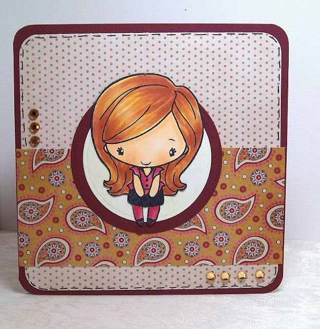 So for today's card I used the wonderfully CUTE C.C. Madden that is brand new from The Greeting Farm. You all know how much I love The Greeting Farm stamps and the Creeper Crew boys and girls are one of my all time favorite stamps. Yes, Anya is always going to be my first love. lol... Anyway, when I first laid eyes on Madden I just knew that I had to have her. Not only is her name very close to my youngest M&M's name she is also just so darn adorable.
